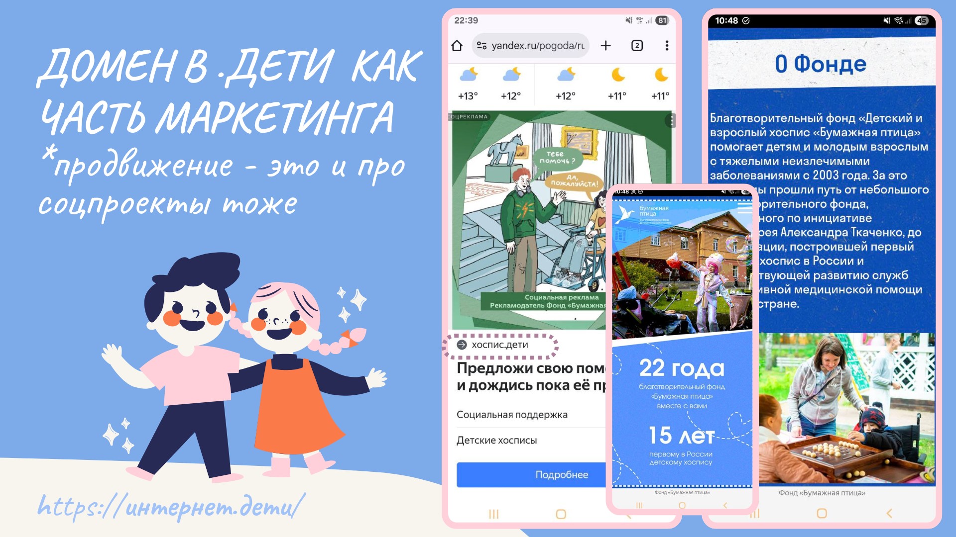 Куратор проектов Фонда Виктория Бунчук рассказала собравшимся о миссии домена .ДЕТИ, его полезных характеристиках и маркетинговых возможностях. «Маркетинг – это не только про коммерческие продукты. Продвижение проекта и его оригинальное представление потенциально заинтересованной аудитории полезно и для социальных, и для любых просветительских инициатив, - прокомментировала Виктория. – Домен .ДЕТИ даёт важные маркетинговые преимущества. Будучи кириллическими, адреса сайтов в .ДЕТИ, лучше индексируются в поисковиках, они проще воспринимаются в контекстной или баннерной рекламе, а также легко запоминаются и просты в использовании; кроме этого, подбирая адрес для веб-представительства своего проекта в .ДЕТИ не нужно знать правила транслитерации – в адресе можно использовать полное название проекта со всеми «сложными» буквами русской кириллицы».